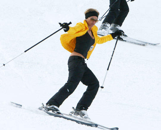 Z kolei portal polki.pl w artykule pt. „Kondycja przed wyjazdem na narty” zauważa, że ćwiczenia i kondycja to jedno. Ale przecież seksowny wygląd na stoku też bardzo się liczy i jako przykład daje Posh Spice. Brawo. Zgadzam się z polki.pl w całej rozciągłości. No i fajnie byłoby pojeździć z Posh Spice bez Davida. Ręce trzyma może odrobinkę za szeroko, ale ten brzuch… i ten styl… Pełen tekst dostępny tu: http://polki.pl/fitness_odchudzanie_artykul,10012233.html