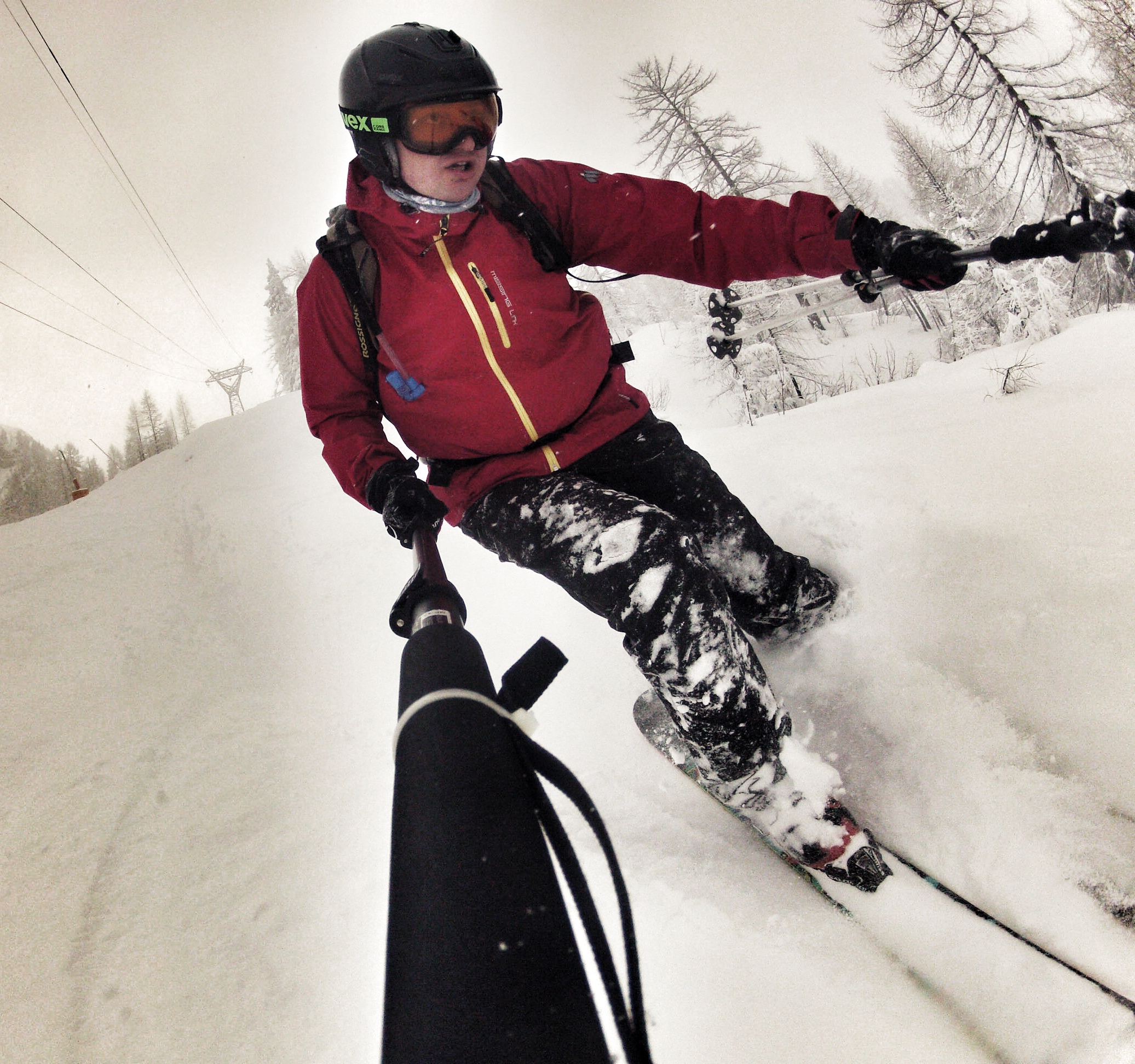 Wystarczy jednak wjechać na twardy, dobrze ubity stok, by poczuć to, do czego ta narta została stworzona. Idealne trzymanie w zakrętach i w dużych przechyłach. Krawędzie wycinające niemal dziury w oblodzeniach. Bardzo duża twardość i sprężystość narty, a co za tym idzie pewność jazdy, pełna kontrola i panowanie przy dużych prędkościach. Przy 80-90 km/h, kiedy mój miękki freeride’owy Rossi Super7 zaczyna się niepewnie trząść i wibrować – tutaj dopiero zaczyna się zabawa! Przy dużej prędkości i dobrym dociśnięciu narty w zakręcie i wyczuciu jej sprężystości narta sama nas „wyrzuca” z jednego zakrętu w drugi i jazda staje się niesamowitą przyjemnością – popatrzcie sami: